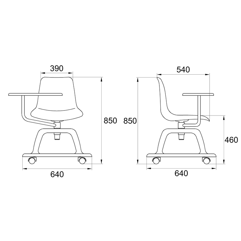 Стул аудиторный COLLEGE со столиком (на крутящемся основании) (красный)